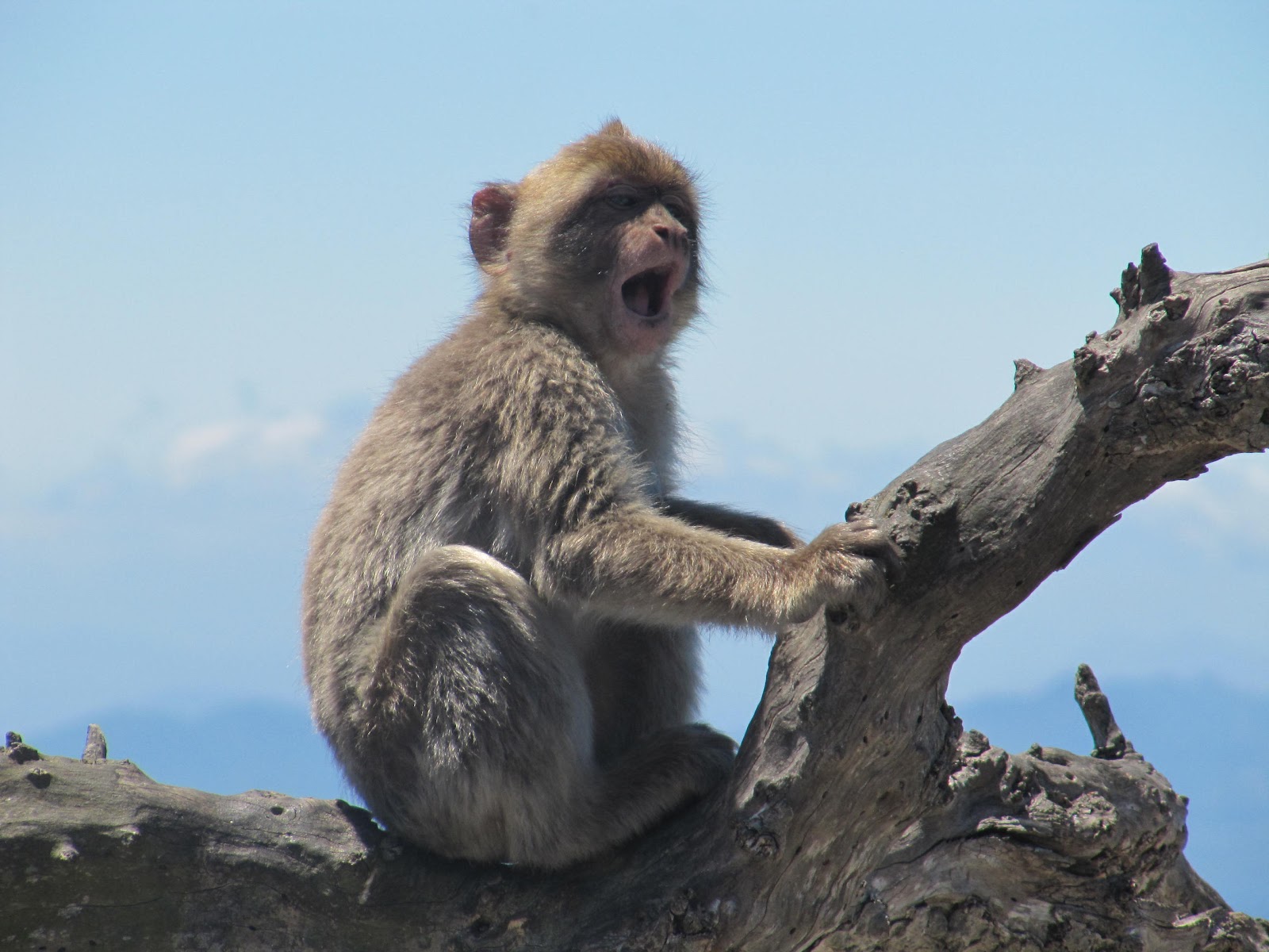 Apor som håller till vid det allra smalaste stället på the Rock. Man ser ända ner till havet på båda sidorna, emellan går bara en väg var taxin kör och slänger av folk. Sen går man en stund och så hoppar man in i taxin igen och fortsätter framåt.